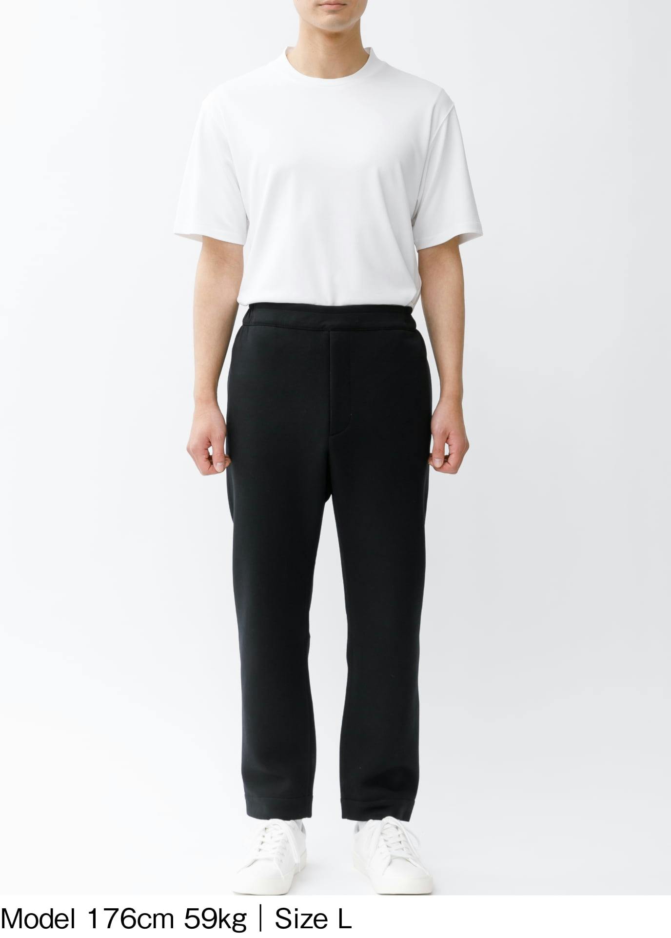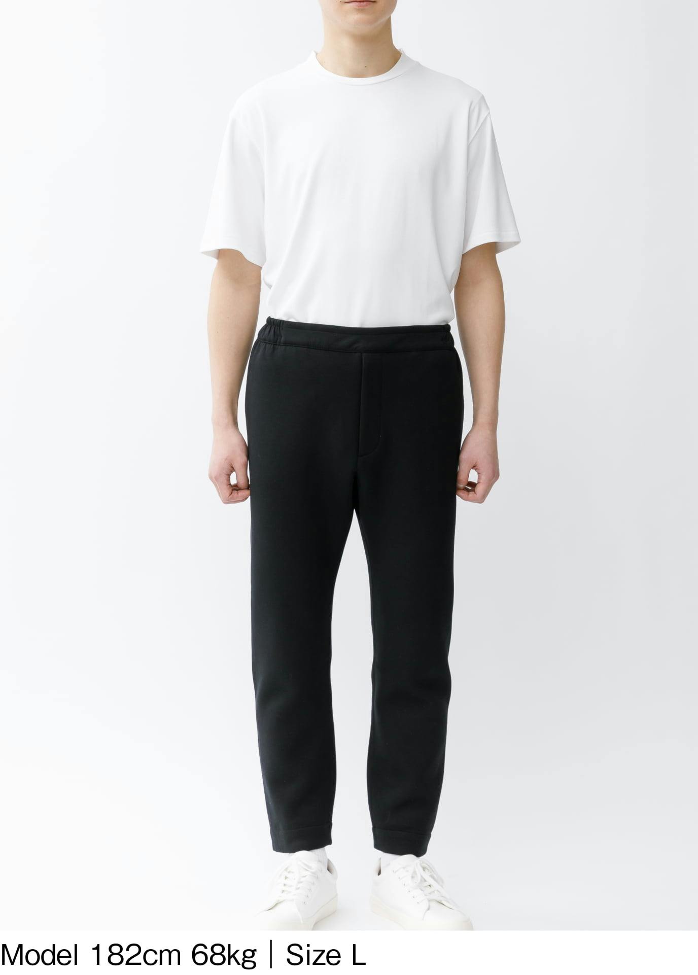ダンボールニット素材のテーパードパンツ。