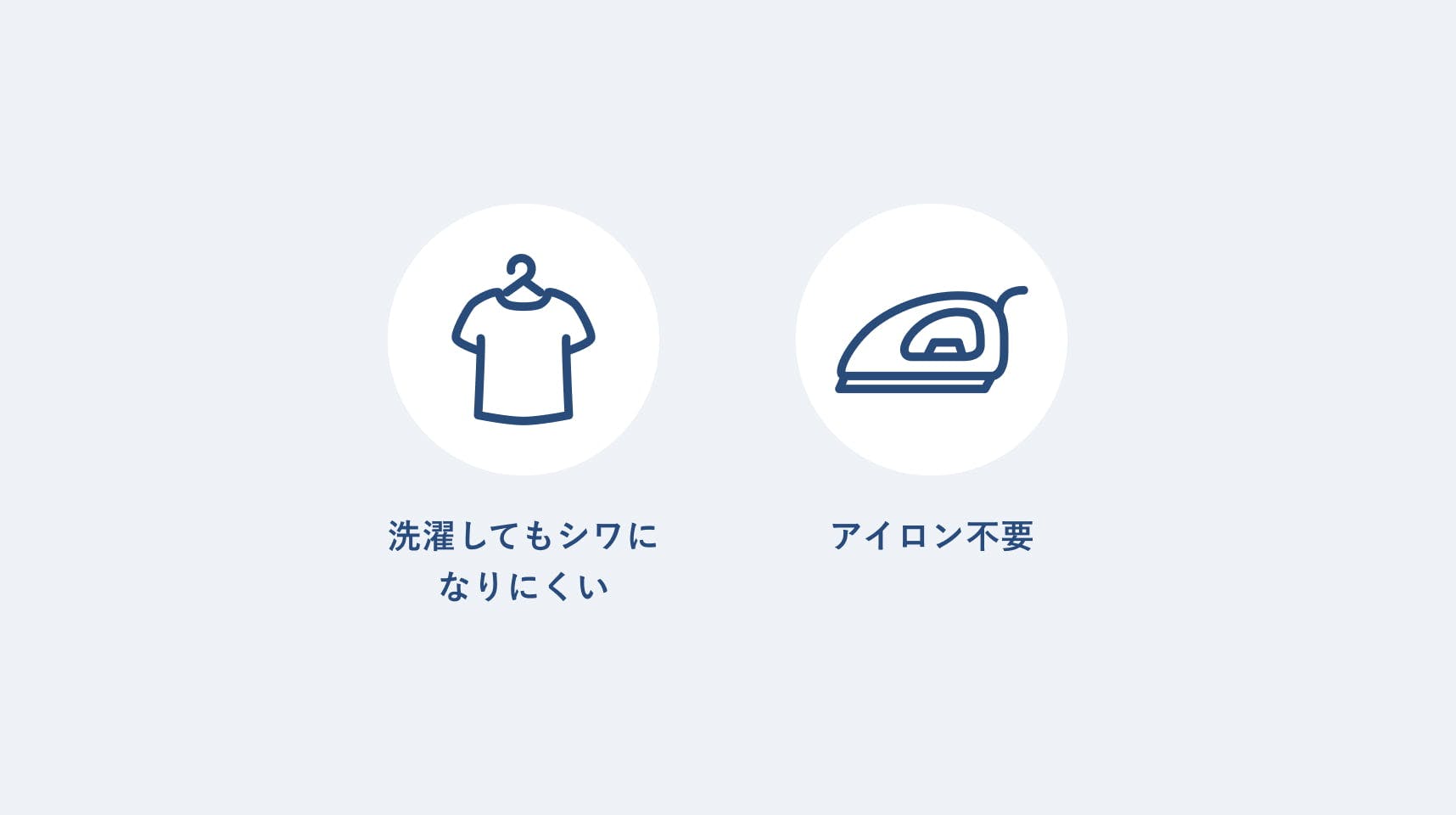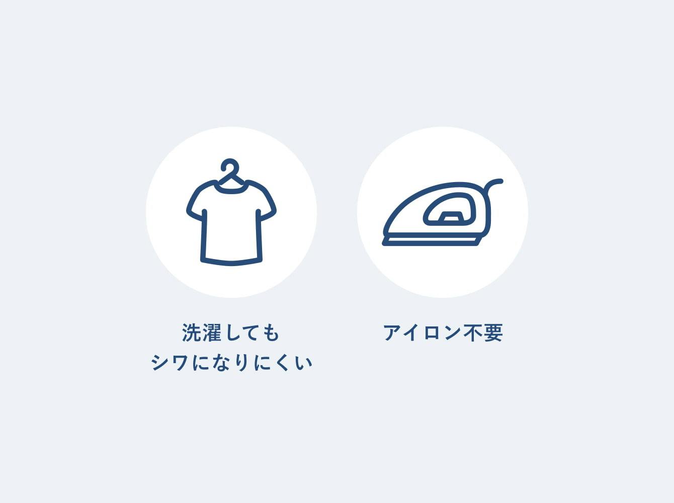 洗濯してもシワになりにくい素材を使用。お手入れにかかる時間を削減します。忙しいあなたの日常をサポートし、日々の生産性向上に貢献します。