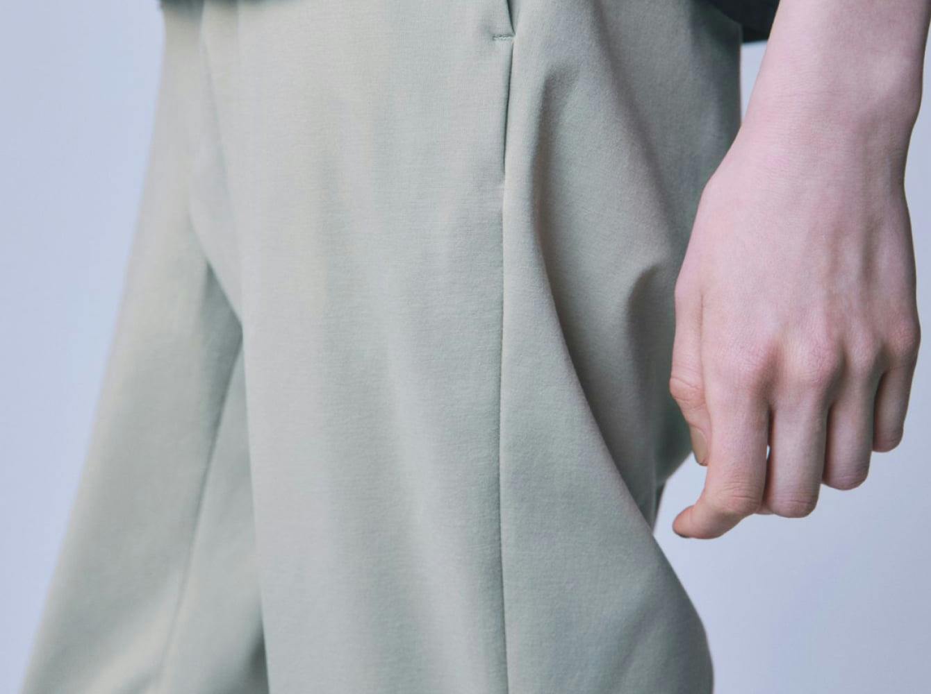 オフィスや出張にぴったりなキレイ目パンツ。「考えなくても決まる」シルエット設計で、忙しい朝の服選びをシンプルに。ポロシャツなどキレイ目なトップスと合わせたスタイリッシュな印象のコーディネートがオススメ。